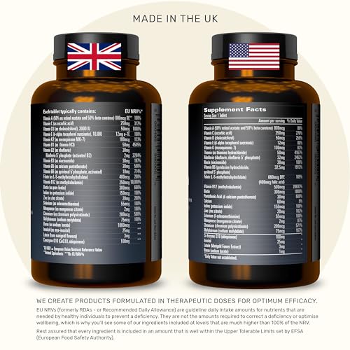 Ingredients :: Microcrystaline cellulose, Ascorbic acid, Dicalcium phosphate, Thiamine hydrochloride, Zinc citrate, Menaquinone MK-7, Methylcobalamin, Ubiquinone, Pyridoxine HCl, Calcium pantothenate, Riboflavin, Niacinamide, Lutein, Myo-inositol, Cholecalciferol, Stearic acid, Coating (Hydroxypropyl Methylcellulose, Glycerol), D-alpha tocopherol succinate, Beta Carotene, Selenomethionine, Magnesium stearate, Silicon dioxide, Manganese Citrate, Sodium borate, Retinol acetate, Pyridoxal 5 Phosphate, Riboflavin 5 Phosphate, Chromium polynicotinate, L-5-Methyltetrahydrofolate, Biotin, Potassium iodide, Sodium molybdate