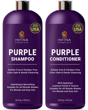 INFINA ESSENTIALS Purple Shampoo and Conditioner Set - Sulfate Free, Enriched with Coconut Oil & Aloe Vera, Ideal for Blonde, Gray, Brassy & Color Treated Hair, Nourishes & Hydrates - 16 fl oz each