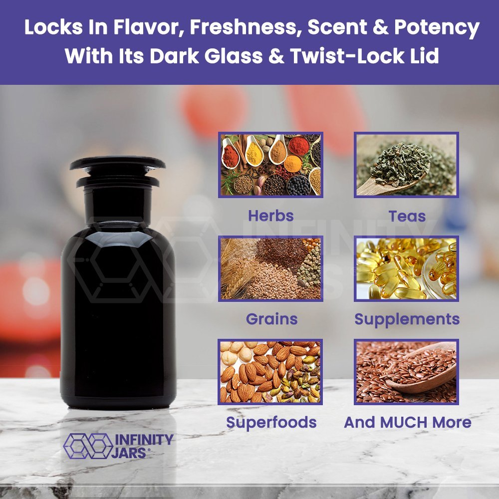 Store your herbs and spices in style with Infinity Jars Black Glass Apothecary Jar. This 50 ml jar with an airtight glass lid preserves the freshness and potency of your ingredients, making it the perfect solution for long-term storage.