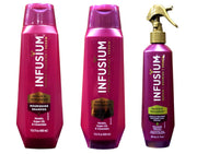 Infusium Moisturize & Replenish range includes shampoo, conditioner, and leave-in treatment. This set provides intense hydration and nourishment for healthier-looking hair.