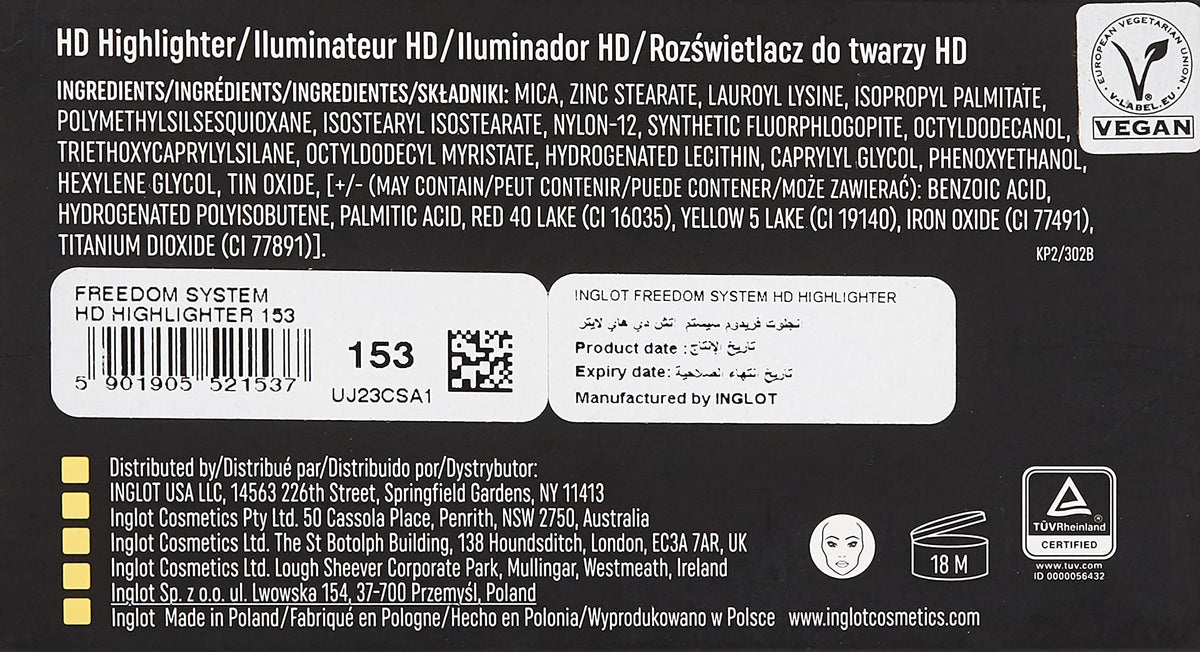 Inglot FREEDOM SYSTEM HD HIGHLIGHTER 153 is a high-definition highlighter that adds a radiant glow to your complexion. This highlighter is finely milled for a seamless application and a luminous finish.