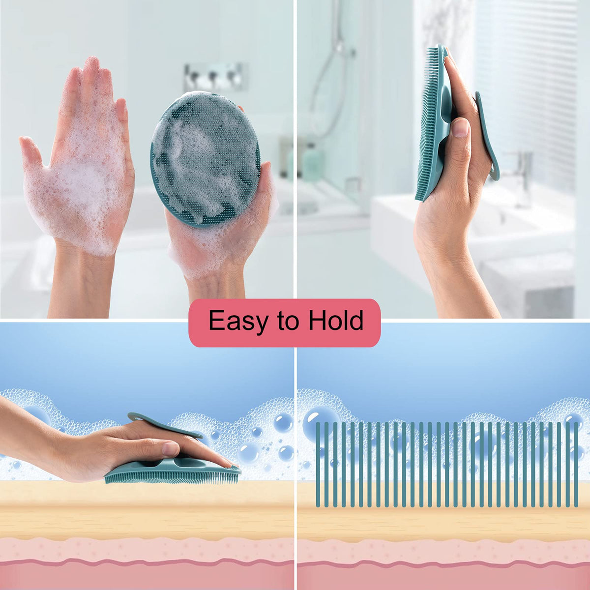 INNERNEED Soft Silicone Body Cleansing Brush Shower Scrubber, Gentle Exfoliating and Massage for All Kinds of Skin (Dark Green)