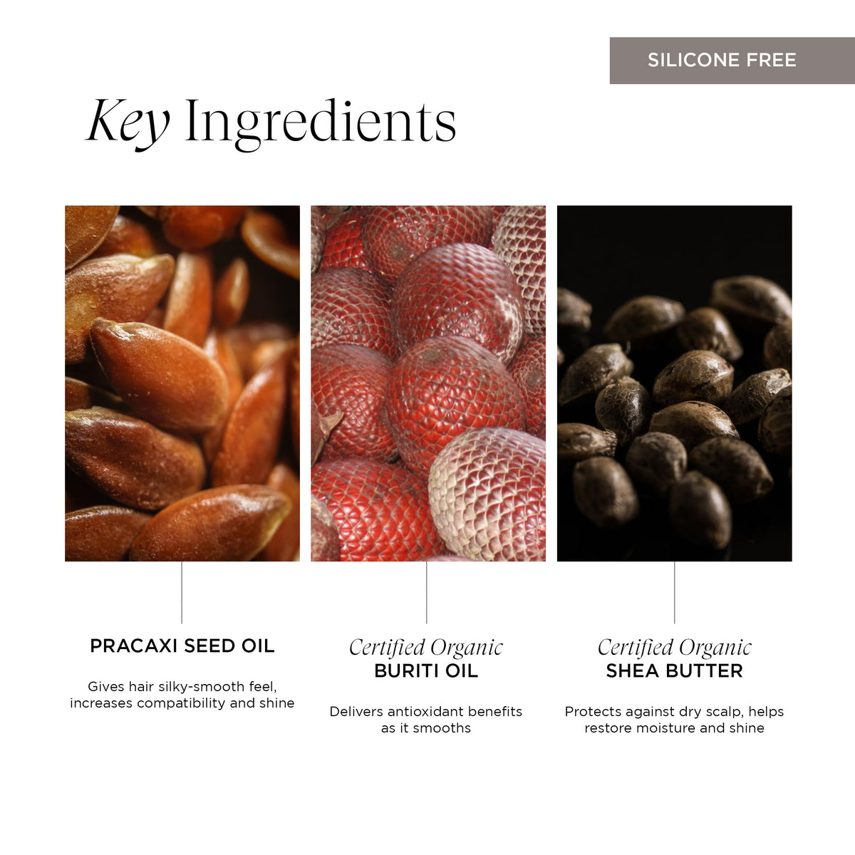 Ingredients: Water Aqua, Glycerin, Behentrimonium Chloride, Glyceryl Stearate, CaprylicCapric Triglyceride, Behenyl Alcohol, Mauritia Flexuosa Buriti Fruit Oil, Nigella Sativa Black Cumin Seed Oil, Cucurbita Pepo Pumpkin Seed Oil, Rubus Idaeus Raspberry Seed Oil, Vitis Vinifera Grape Seed Oil, Vaccinium Macrocarpon Cranberry Seed Oil, Butyrospermum Parkii Shea Butter, Pentaclethra Macroloba Seed Oil, Calophyllum Inophyllum Tamanu Seed Oil, Tapioca Starch, Aroma, Guar Hydroxypropyltrimonium Chloride, Cetearyl Alcohol, Capryloyl GlycerinSebacic Acid Copolymer, Diheptyl Succinate, Citric Acid, Gluconolactone, Potassium Sorbate, Sodium Benzoate, Limonene, Tocopherol Vitamin E