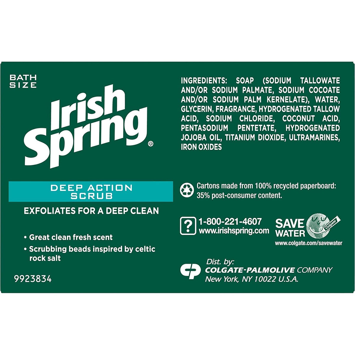 Short Product Description :: Irish Spring Deep Action Scrub Bar Soap is inspired by Celtic rock salt. Its exhilarating scent and rich lather will transform you from rough to ready.