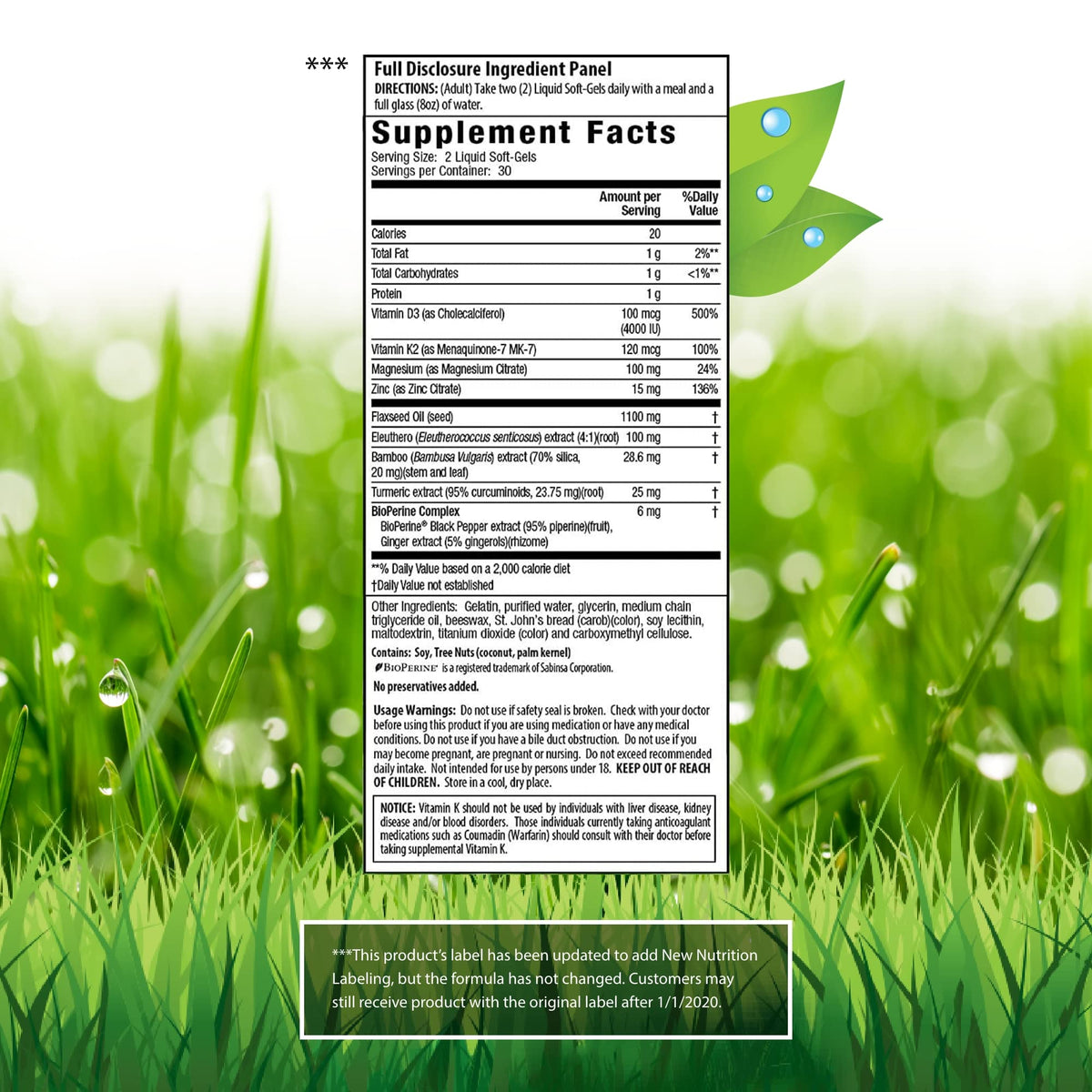 Special Ingredients :: Magnesium, Turmeric, Bamboo extract, Vitamin D3, K2, Zinc
