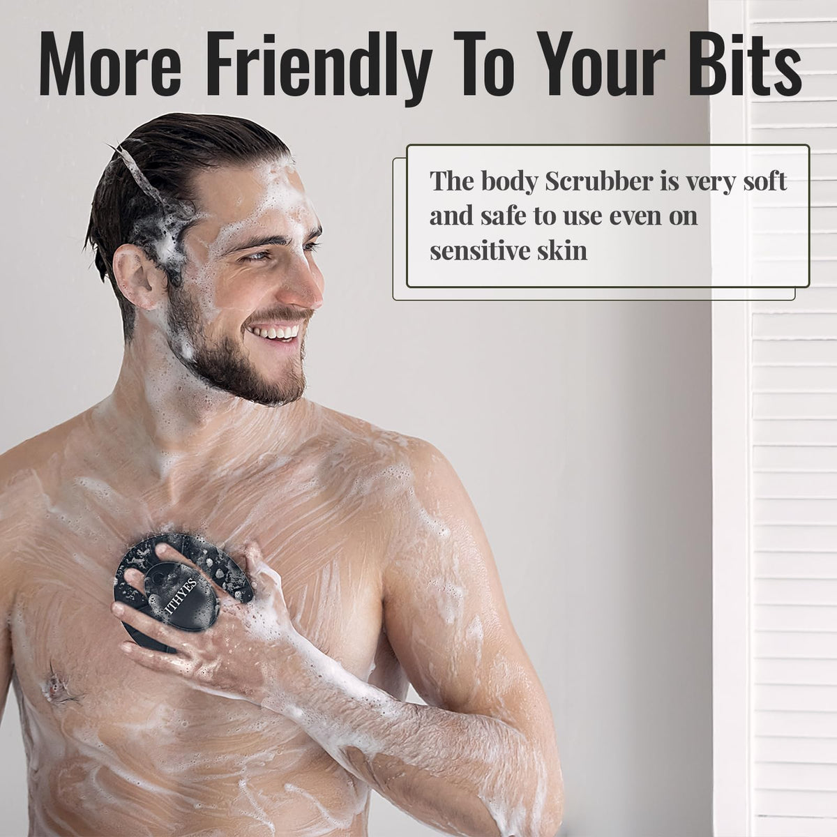 Ithyes Silicone Body Scrubber Exfoliating Body Brush for Men Women Lathers Well Easy to Clean More Hygienic Than Loofah Shower Scrubber Face Scrubber for Sensitive Skin 1 Pack (Black)