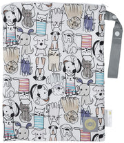 Itzy Ritzy Sealed Wet Bag with Handle – Wet Bag for Travel, Swimsuits, Cloth Diapers, Gym Clothes & Toiletries - Washable & Reusable with Water Resistant Lining - Measures 11” x 14” (Cats & Dogs)