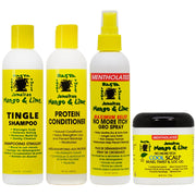Experience the ultimate scalp care with our Jamaican Mango & Lime 4-piece Set. This cooling collection includes shampoo, conditioner, relief spray, and styling gel for a refreshing and soothing hair care routine.