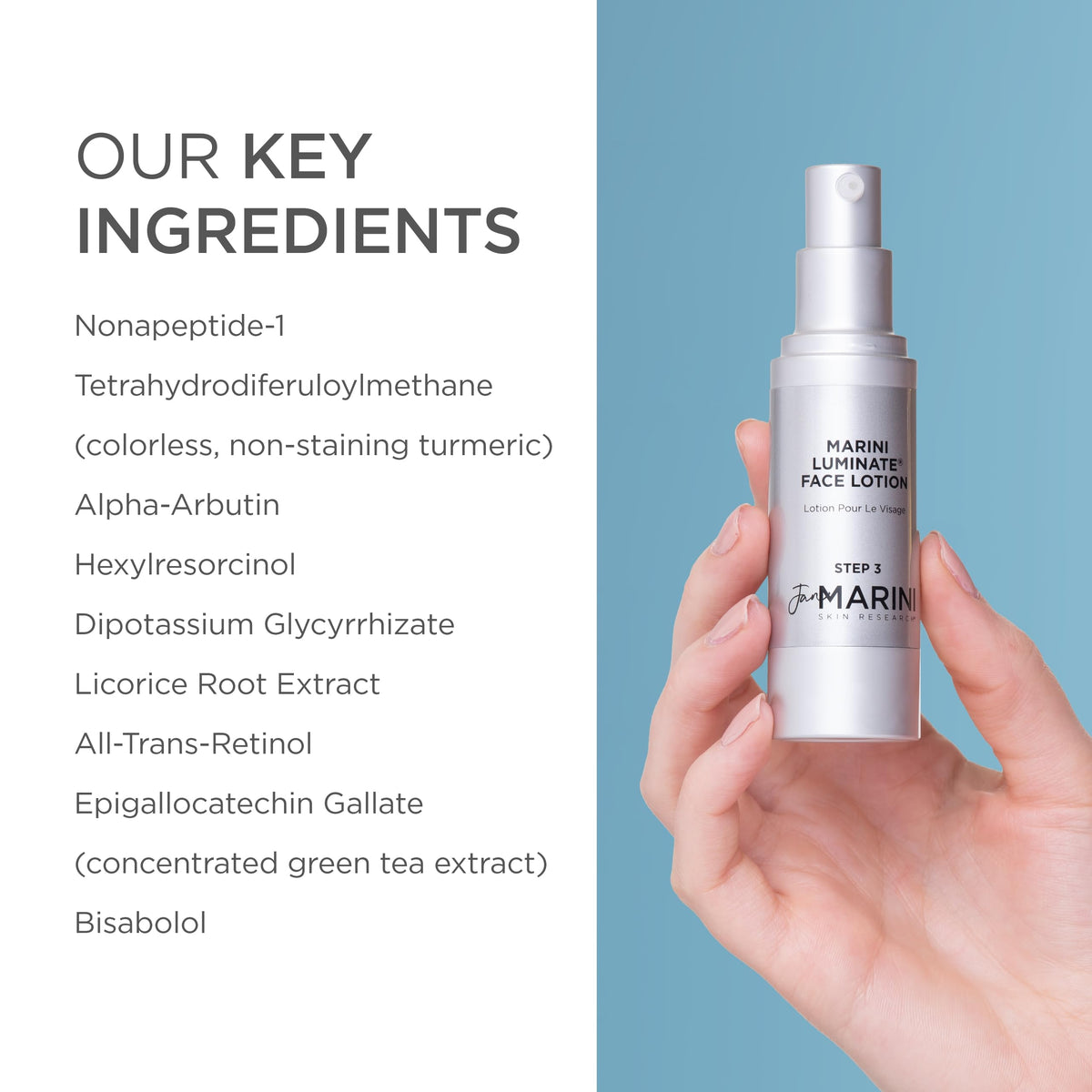 Jan Marini Skin Research Marini Luminate® Face Lotion, a 1 oz solution for luminous skin. This face lotion targets discoloration and promotes a brighter complexion.