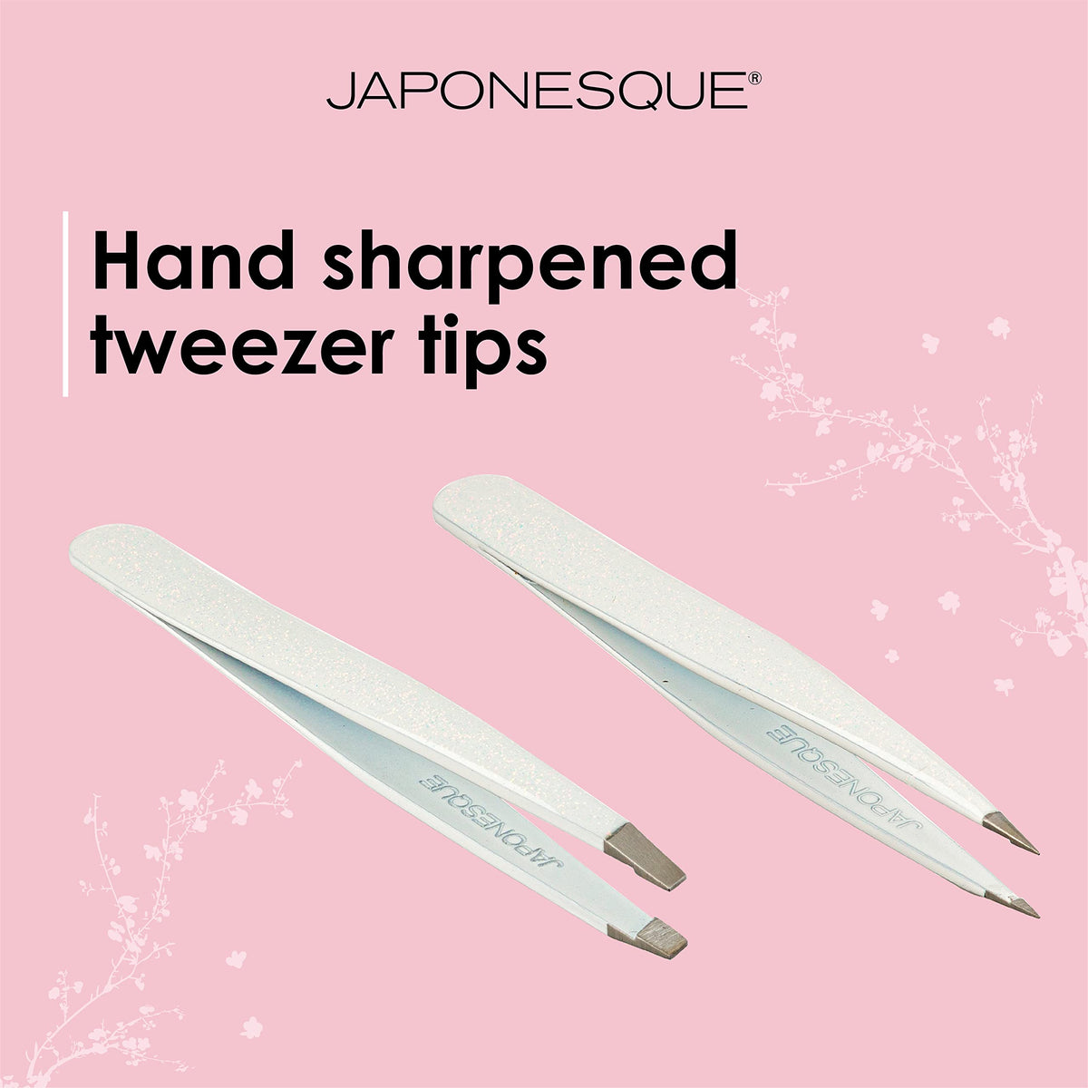 Shape and define your brows with JAPONESQUE Pointed & Slant Tweezers Natural Shimmer Set. These precision-crafted tweezers ensure flawless brow grooming.