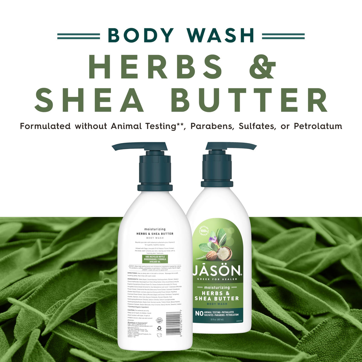 Pamper your skin with JASON Herbs and Shea Butter Moisturizing Body Wash. This gentle cleanser in a 30-fluid ounce bottle combines the goodness of herbs and Shea Butter for a soothing and nourishing bathing experience.