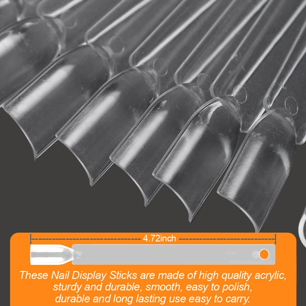 JASSINS 50 Pcs Nail Swatch Sticks with Ring and Numbered Tips - Clear Fan-shaped Display for Nail Art Polish Practice