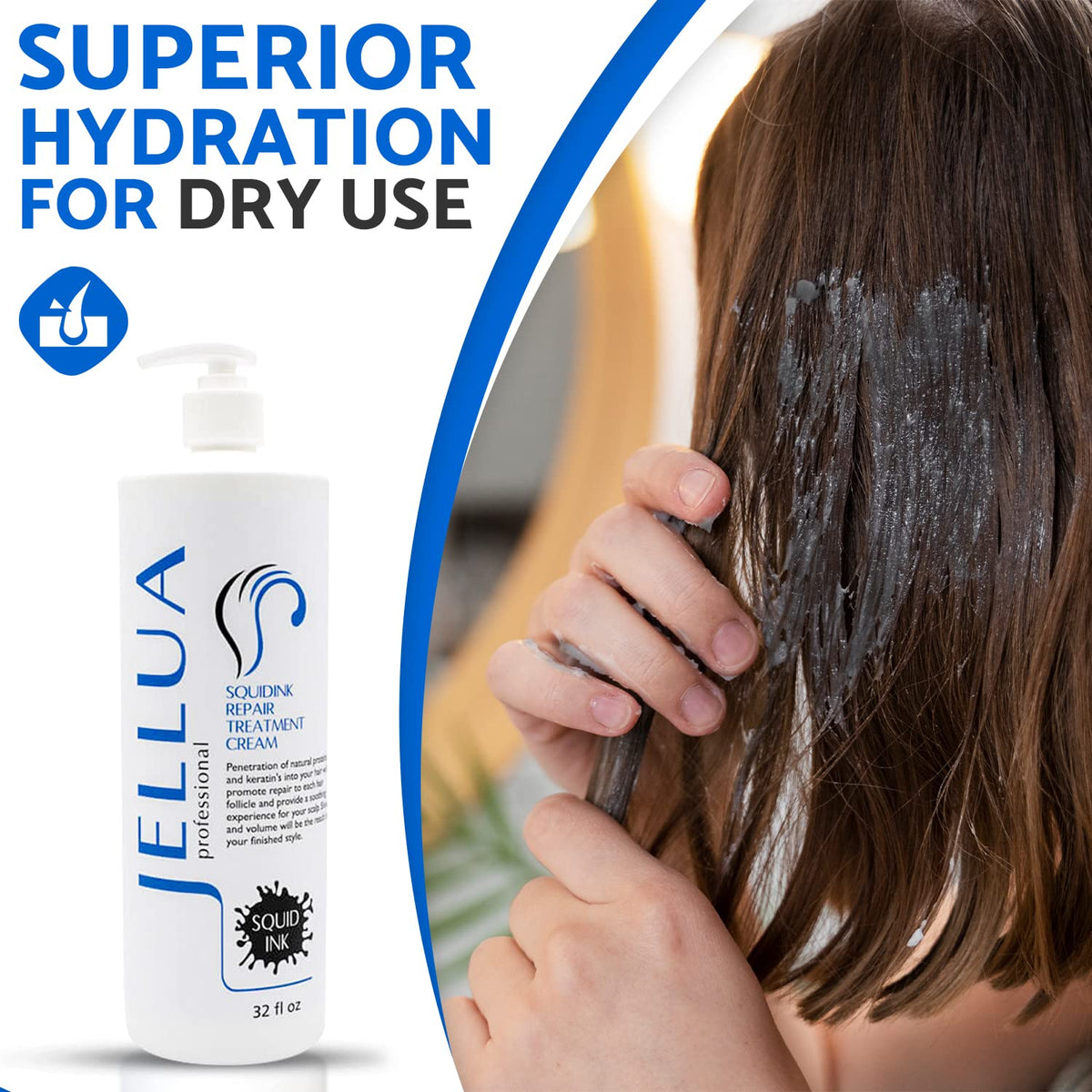 Jellua Squidink Repair Treatment Cream is a luxurious hair treatment that deeply nourishes and repairs damaged hair. With a generous 32.0 oz size, this cream provides long-lasting hydration and restoration for healthier hair.