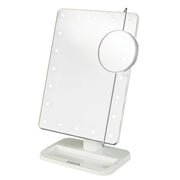 Transform your vanity with the Jerdon 8-Inch Lighted Vanity Mirror. This rectangular tabletop mirror in white offers 10X magnification for precise makeup application.