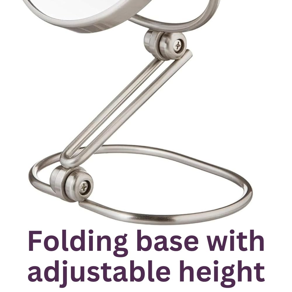 JERDON Compact Magnifying Mirror is a folding 5.5" travel mirror with 10X & 1X magnification, offering a compact and versatile solution for detailed grooming and makeup application.