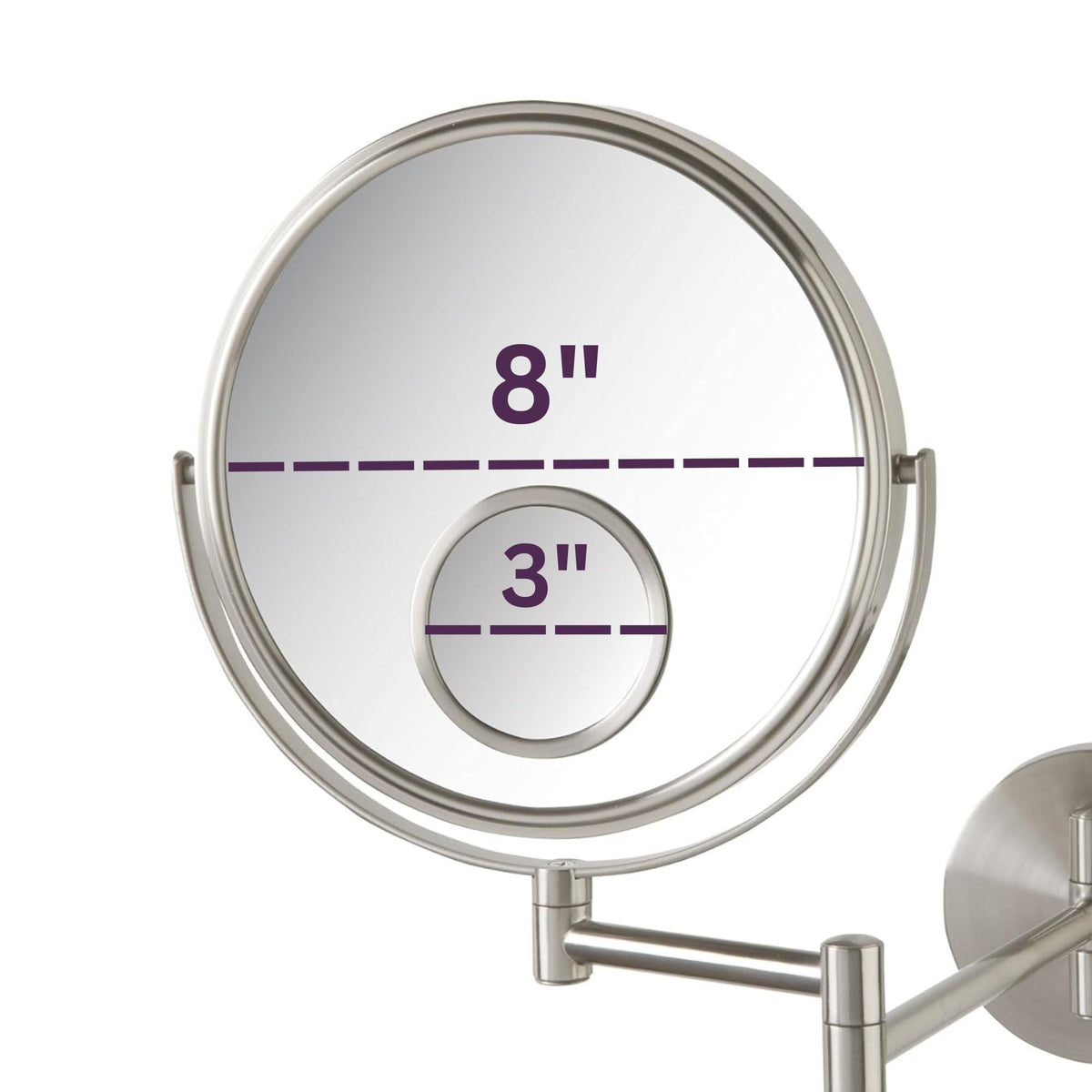Jerdon JP7510N 8-Inch Wall Mount Makeup Mirror with 10x and 15x Magnification, Nickel Finish