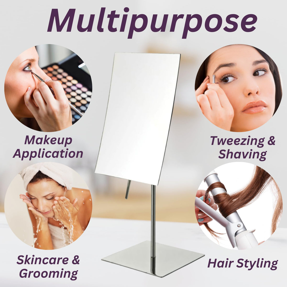 Enhance your makeup routine with the JERDON Rectangular Tabletop Makeup Mirror. This 3X magnification mirror with a polished stainless steel finish is a must-have for your vanity.