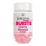 Short Product Description :: Wait… a moisturizer in fun-shaped squishy bursts Yep. That’s right. It’s squishy! It’s lotion! It’s squishy Jergens Bursts! Try it for yourself: Jergens Cherry Almond Lotion Bursts. Our little pop of hydration in a heart shape in our iconic cherry almond scent. These bursts deliver a delightfully scented, moisturizer moment. Just squish and smooth them over your skin. The result is long-lasting, 24-hour hydration. Each fun-shaped Burst is curated with the beloved O.G. Jergens moisturizer, which makes our Jergens Lotion Bursts help your skin look and feel hydrated, soft, and smooth. Squish it, smooth it, love it. To use these cute little Lotion Bursts, place in hand, smoosh, squish, or rub into your desired body part, and then use it as you would any other lotion–but it’s way more fun! Squish it, smooth it, love it. Jergens Cherry Almond Lotion Bursts are an undeniably adorable way to hydrate your skin. Big fan of the color pink How about hearts Do you adore the scent of cherry almond If so, you’ll love these pink hearts featuring a classic cherry almond scent. Are you searching for gifts for teens Jergens Cherry Almond Lotion Bursts are the cutest for teenage skin care. As teen girl gifts, these moisture bursts will be love at first squish! Plus Jergens is a brand you’ve always trusted for lotion with ingredients you can feel good about. Jergens Cherry Almond Lotion Bursts are not only dermatologist tested, they are also cruelty free and paraben free too. Each incredible, little moisturizer is a need-to-squeeze burst of lotion you’ll love, so go on and heart it!