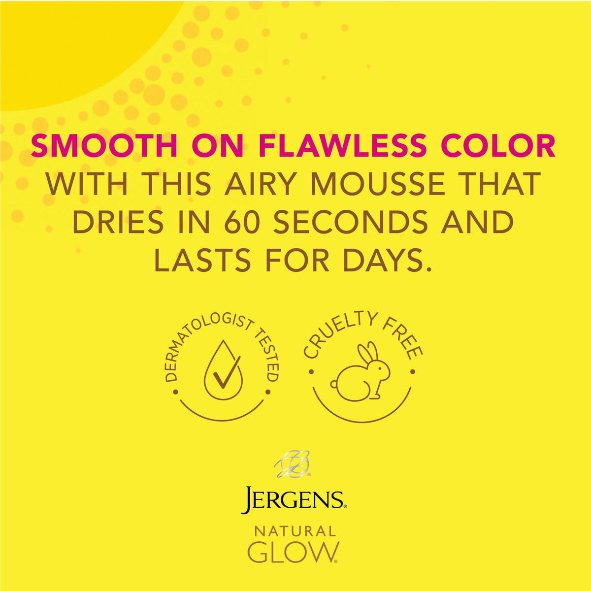 Jergens Natural Glow Instant Sun Body Mousse offers a light bronze tan instantly. This sunless tanning body bronzer provides a natural-looking color without exposure to harmful UV rays.