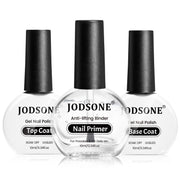 JODSONE 3Pcs Nail Primer Set offers professional-quality nail care for long-lasting manicures. The base coat and top coat enhance adhesion, ensuring your nail color stays vibrant and chip-free for extended periods.