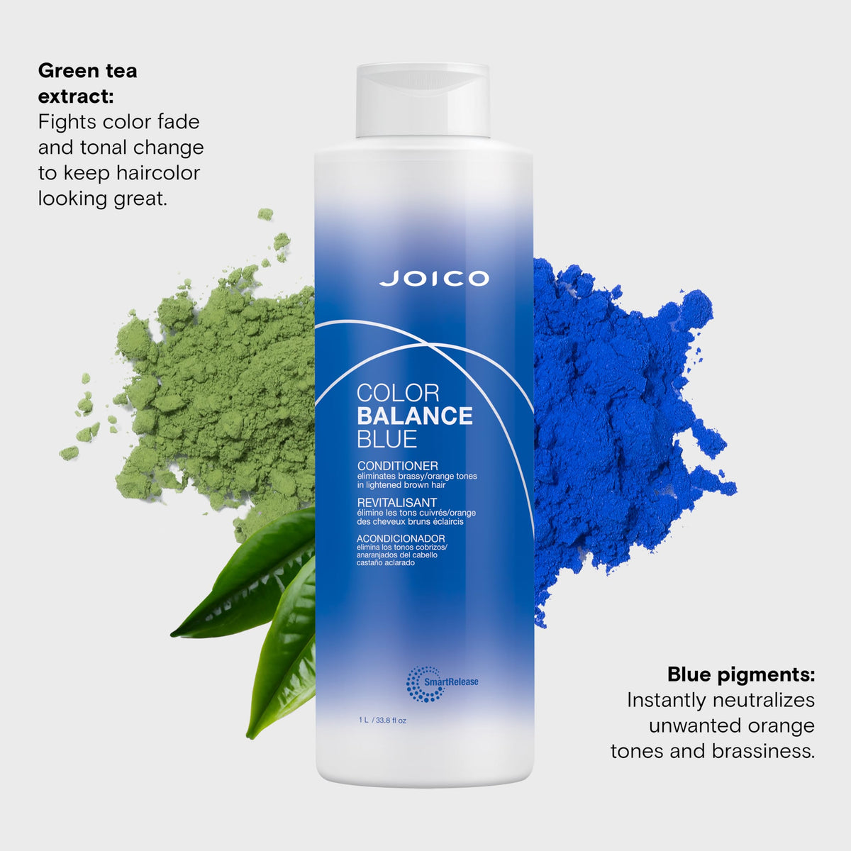 Joico Color Balance Blue Conditioner | For Lightened Brown Hair | Eliminate Brassy Orange Tones | Boost Color Vibrancy & Shine | UV Protection | With Rosehip Oil & Green Tea Extract | 33.8 Fl Oz