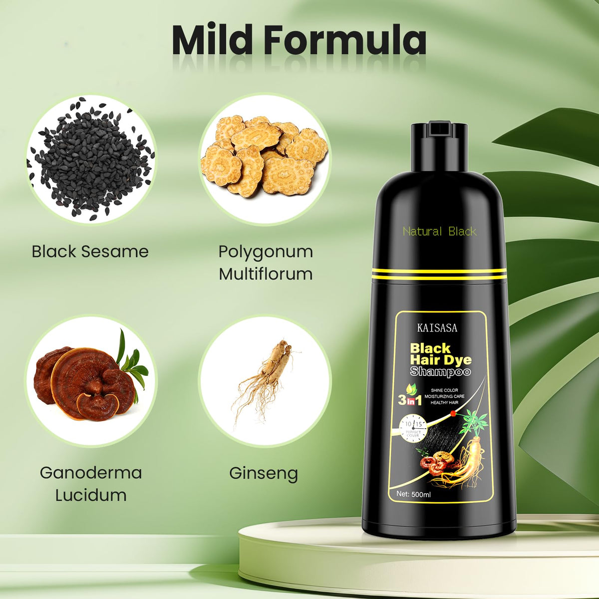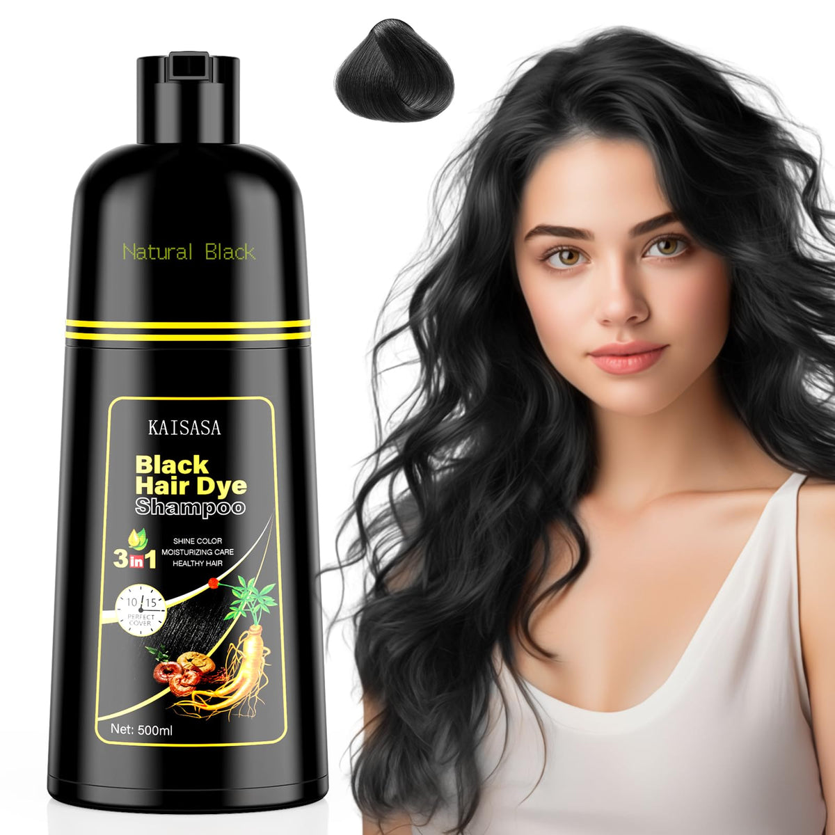 JUANCHI Black hair dye shampoo 3 in 1,Hair Dye Shampoo for Women and Men,Long Lasting,Easy to Use(500ml,16.9oz)