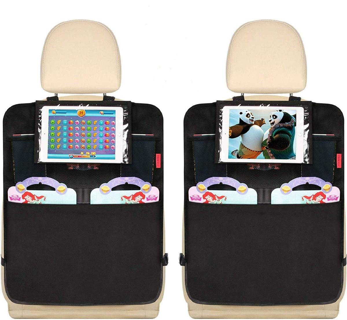 Kaiphy Car Backseat Organizer Premium Quality Car Kick Mats with 10 Tablet Holder - Extra Large Pocket- Sturdy Top 2Pack