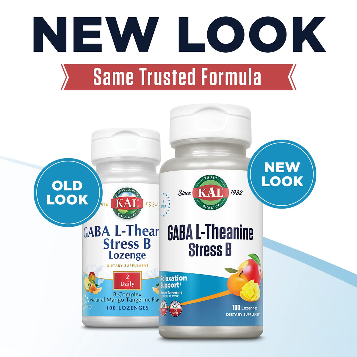 KAL GABA L-Theanine Stress B Lozenge, B Complex Vitamin Supplement, Healthy Relaxation, Mood & Focus Support, Natural Mango Tangerine Flavor, Vegan, 50 Servings, 100 Lozenges