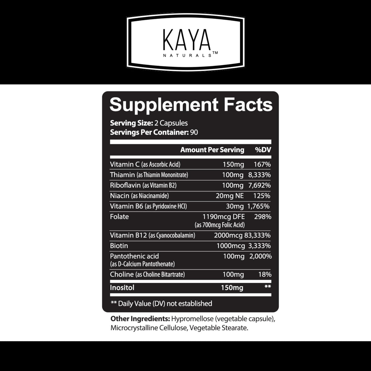 Kaya Naturals B-12 Complex | Multivitamin Supplement for Women & Men | Energy and Metabolism Booster | Vitamin Supplement with Biotin, Choline, Inositol, Folate, and Vitamin C – 180 Count