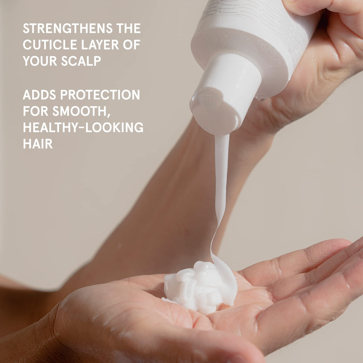 Apply shampoo to scalp, lather, and rinse. Apply conditioner to scalp, leave in for a short period, then rinse out.