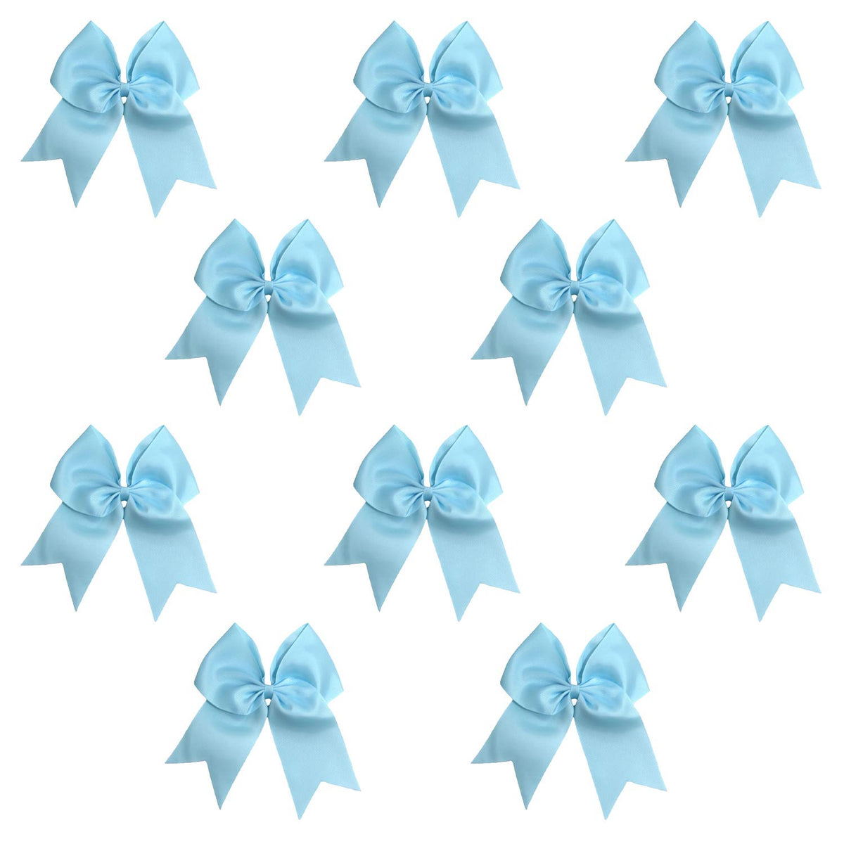 Hot Pink: 7 Jumbo Cheer Bow Big Hair Bows with Ponytail Holder Large Classic Accessories for Teens Women Girls Softball Cheerleader Sports Elastics Ties Handmade by Kenz Laurenz (Hot Pink)
