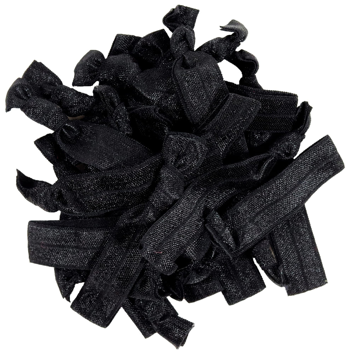 50 Pack : Black Hair Ties No Crease Ponytail Holders (Available in Lots of Pack Quantities) - Ouchless Elastic Styling Accessories Pony Tail Holder Ribbon Bands - By Kenz Laurenz (50 Pack)