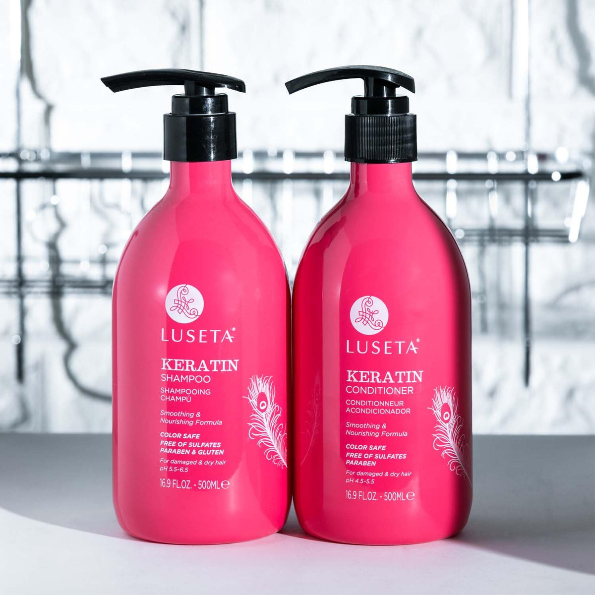Keratin Shampoo and Conditioner Set is a sulfate-free treatment for dry and damaged hair. This nourishing and moisturizing set is designed to smooth frizz, improve hair texture, and provide essential care for both men and women.