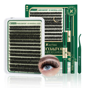 KEYYOU DIY Lash Extension Kit - 280pcs Soft Clusters - 100D Curl - Easy to Apply with Bond, Seal & Remover - At Home