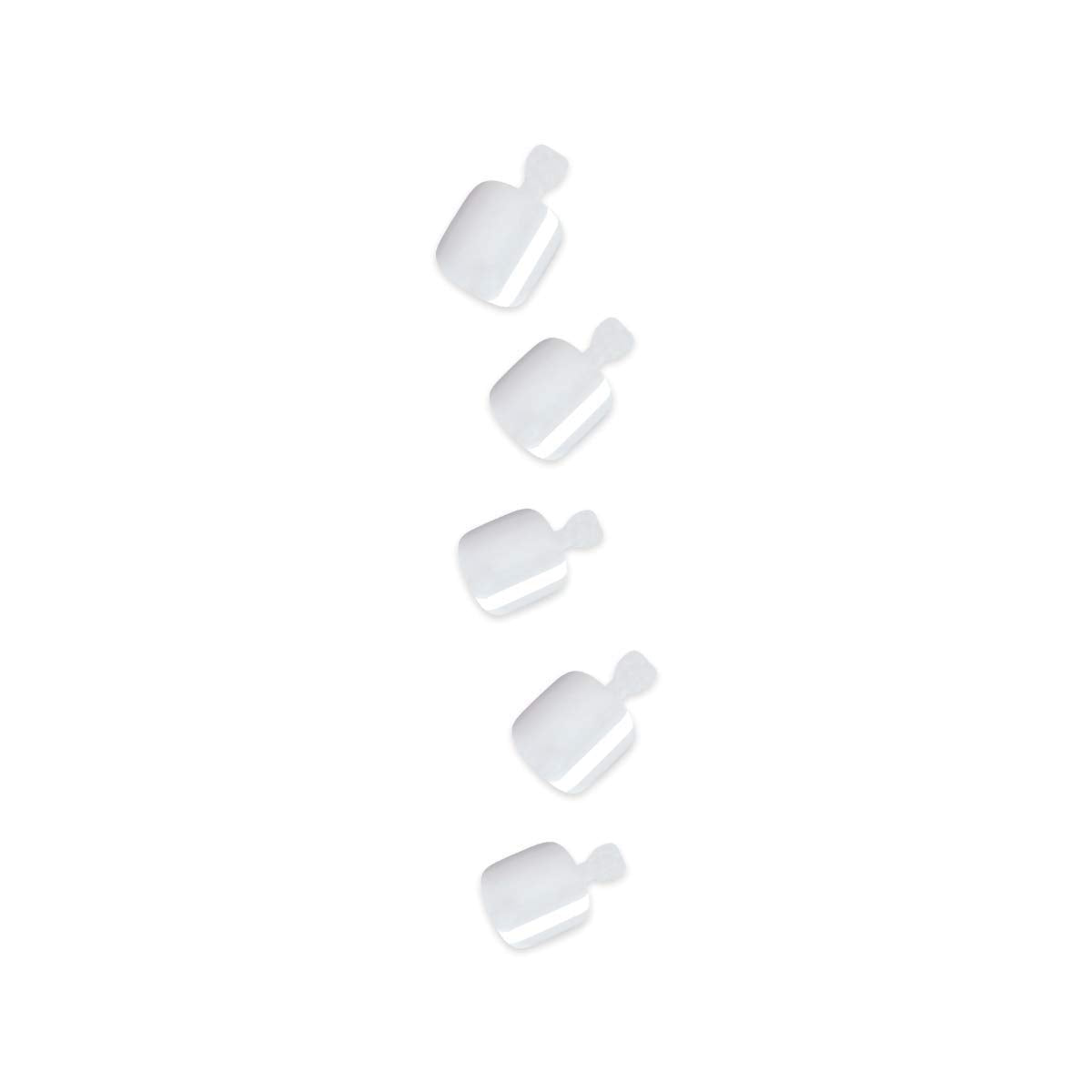 Directions :: 1. Select the correct size nail tip to fit each toe. 2. If needed, file sides of artificial nails for a better fit. 3. Holding artificial nail by numbered edge, apply glue onto the back area, where it will come in contact with your natural nail. 4. Immediately apply a layer of nail glue onto natural nail. Be sure to apply enough glue for proper adhesion, and hold firmly until set. 5. Remove tabs by bending down, then up. 6. Shape and file to desired length.