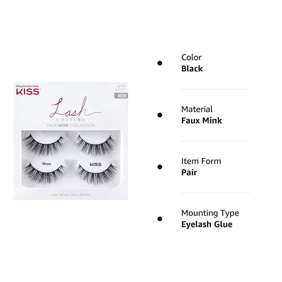 | model name | KISS Lash Couture Faux Mink False Eyelashes Double Pack, KnotFree Lash Band, Reusable |