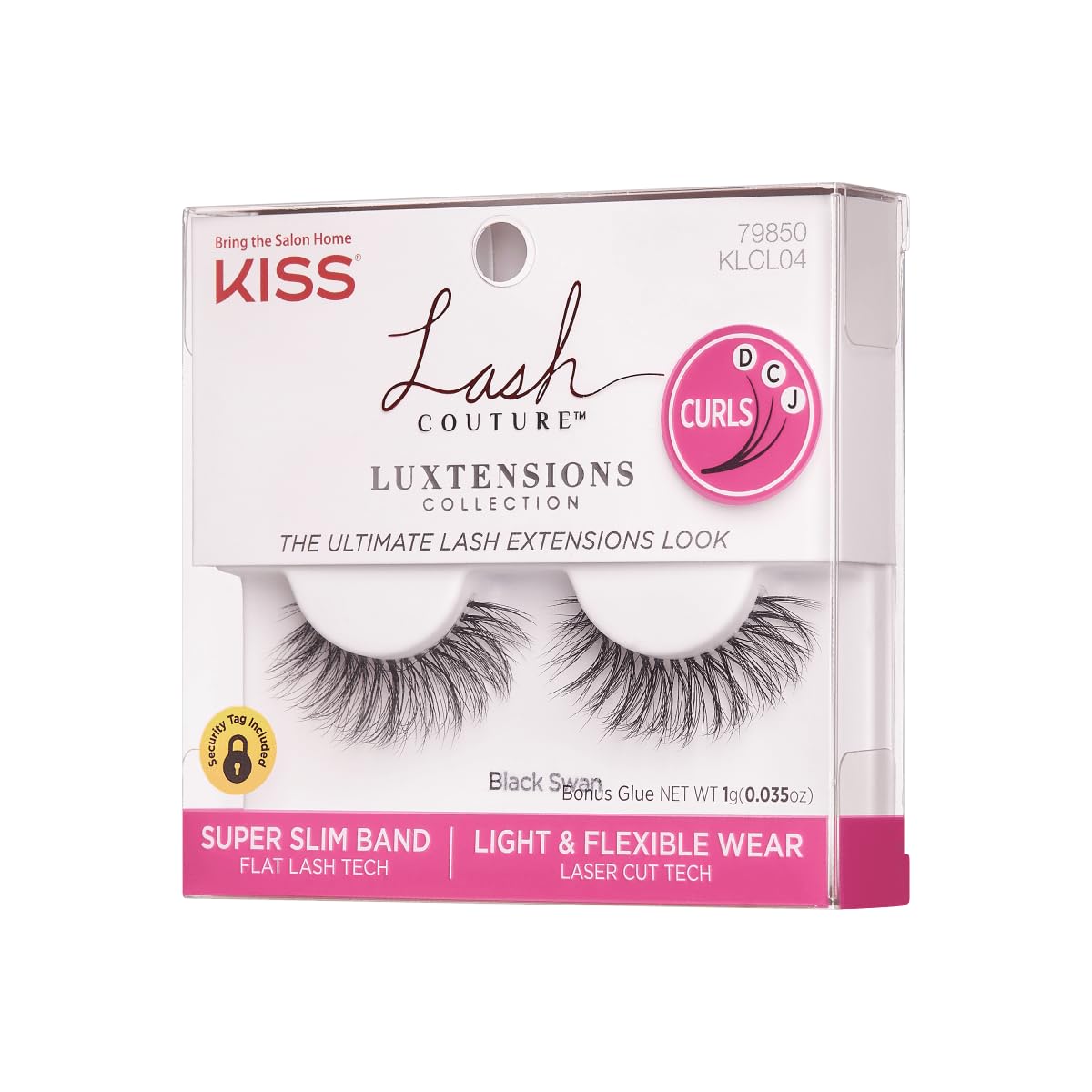 KISS Lash Couture LuXtensions Collection False Eyelashes, Flat Lash Technology, Super Slim Lash Band, Real Lash Extension Fibers, Reusable, Contact Lens Friendly Strip Lashes, Style Black Swan, 1 Pai