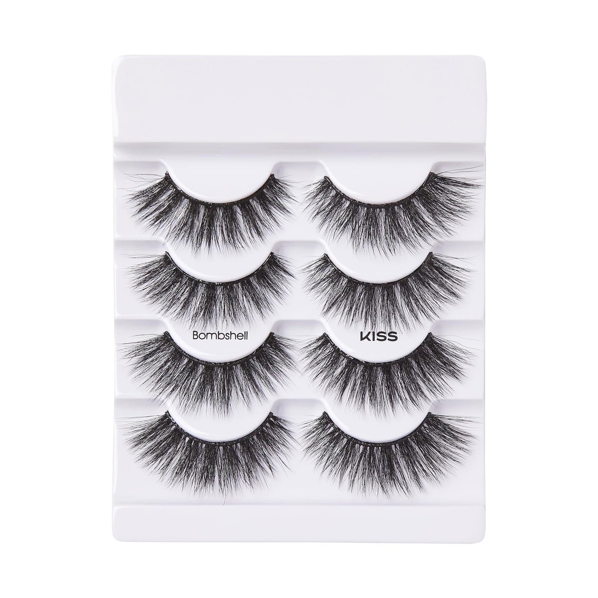 KISS Lash Couture Triple Push Up Collection Multipack, 3D Volume False Eyelashes with Triple Design Technology, Multi-Angles & Lengths, Contact Lens Friendly, Reusable, Style Bombshell, 4 Pairs