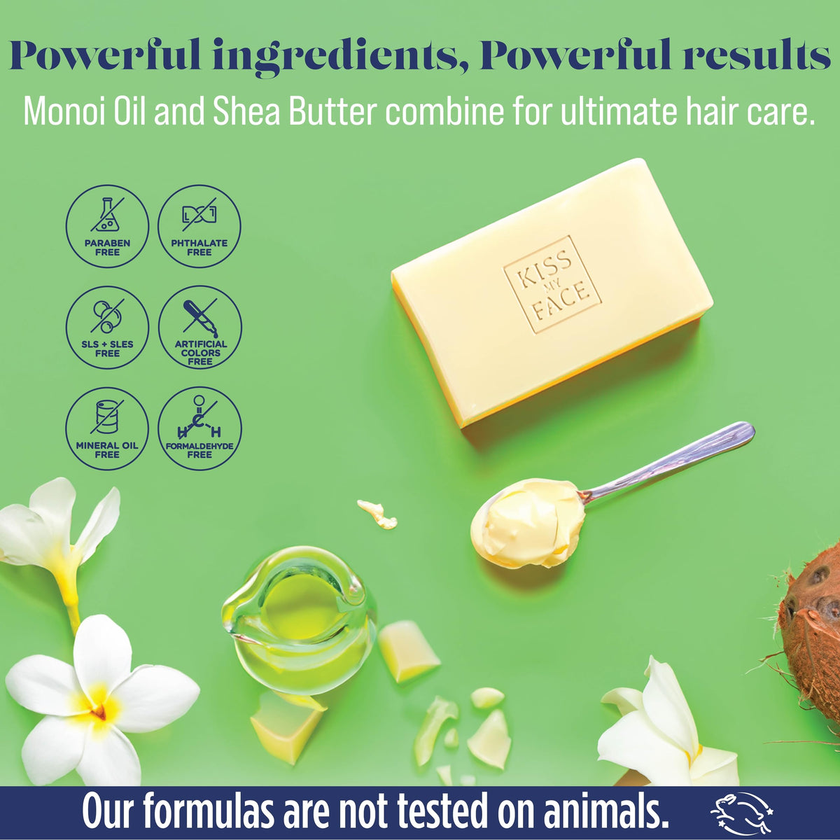 Kiss My Face 2-in-1 Shampoo + Conditioner Bar - Hydrating, Soothing, Smoothening for All Hair Types, Palm Oil-Free, Cruelty-Free with Monoi Oil and Shea Butter