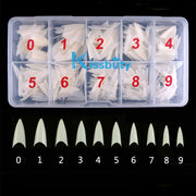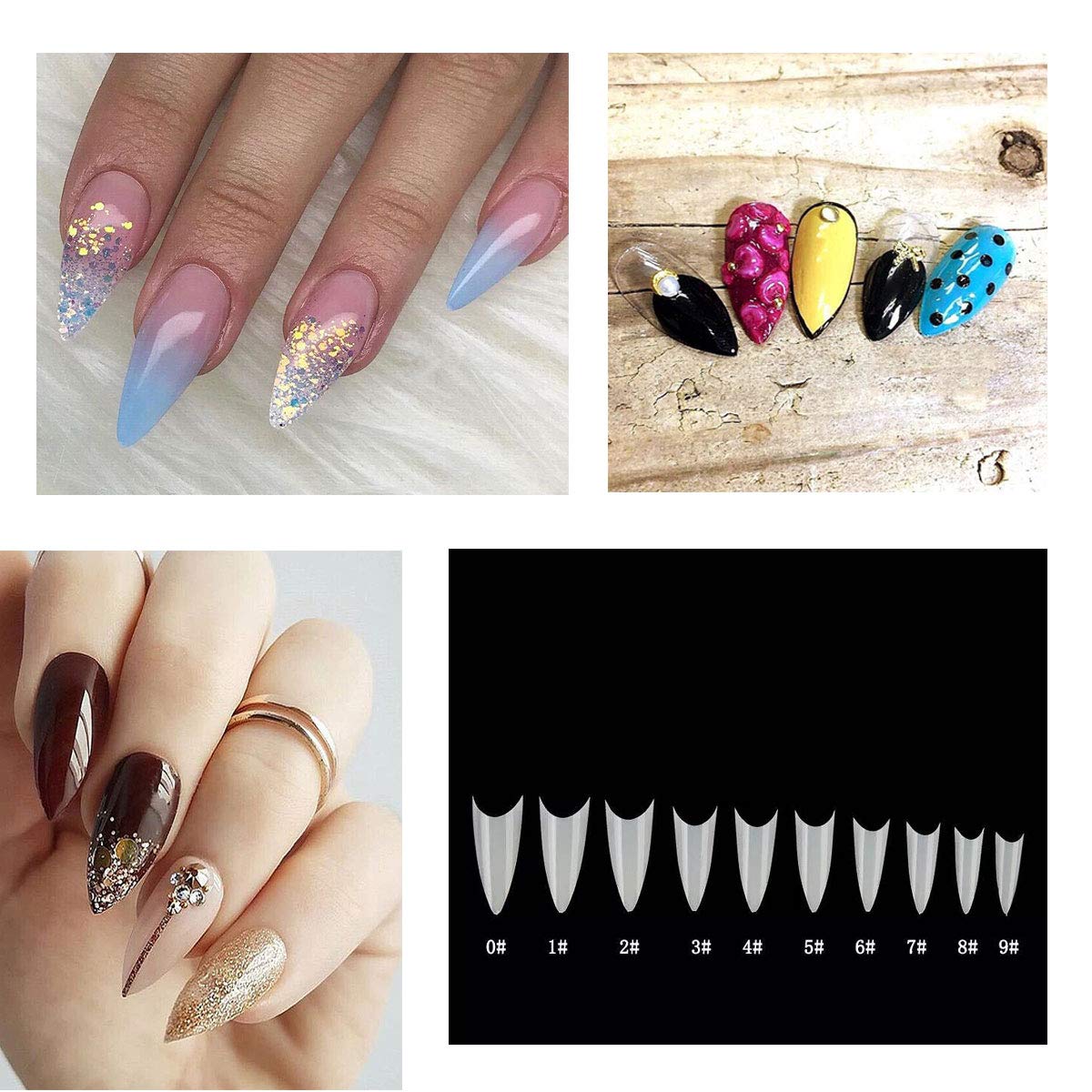 Create stunning nail art with Kissbuty 500 PCS Stiletto Nails. These natural color sharp ending false acrylic nail tips in 10 sizes are perfect for nail salons and DIY nail art at home.