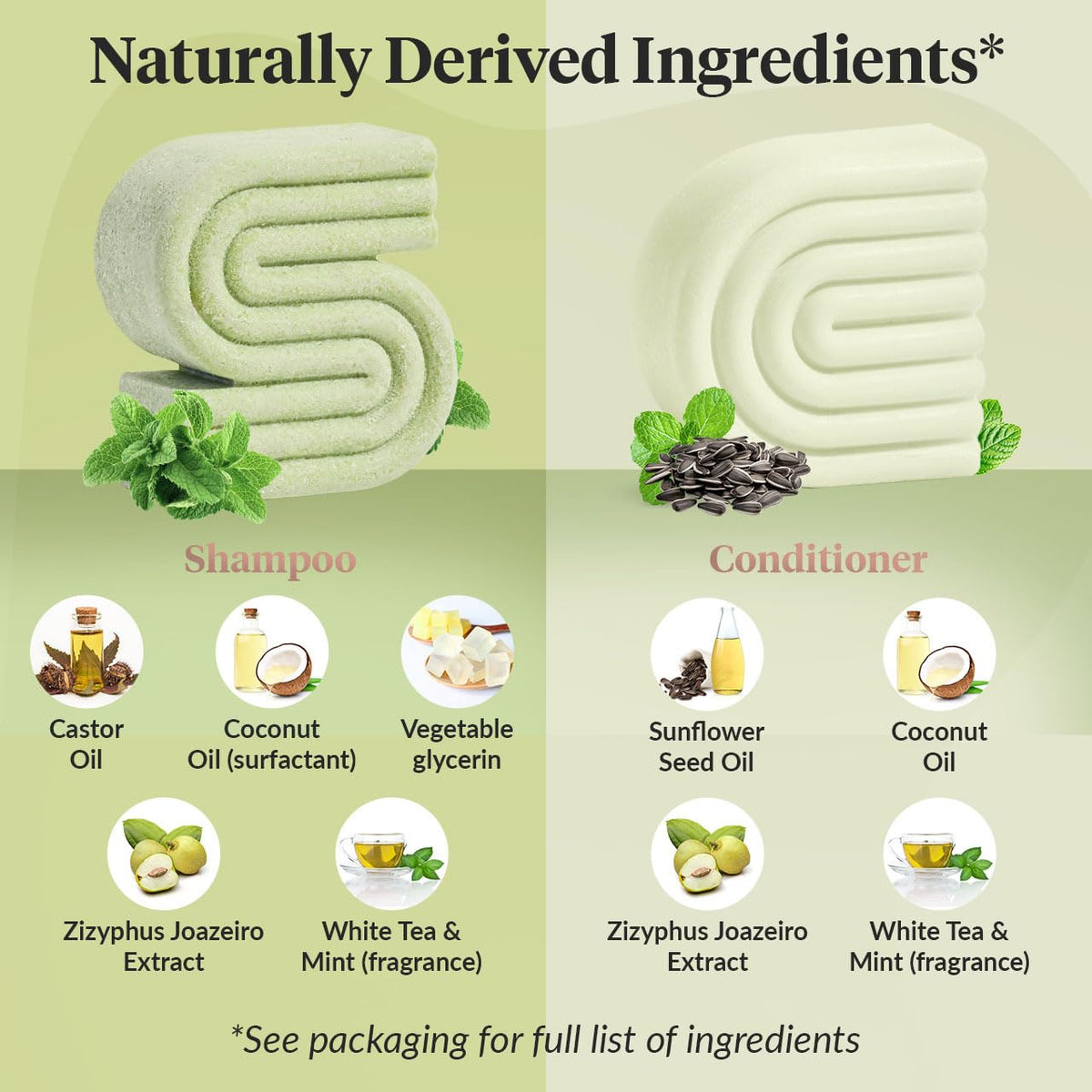 Kitsch Tea Tree & Mint Shampoo and Conditioner Bar Set, Hair Color Safe, Zero Waste, Vegan, Eco Friendly, Made in US, For All Hair Types, Paraben Free & Sulfate Free - 2pcs