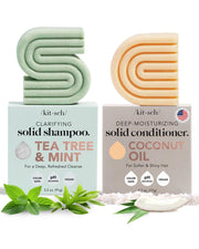 Experience the clarifying and moisturizing power of Kitsch Tea Tree Solid Shampoo & Coconut Oil Conditioner Bar set. This natural organic duo clarifies grease while deeply moisturizing your hair. Set of 2 bars.