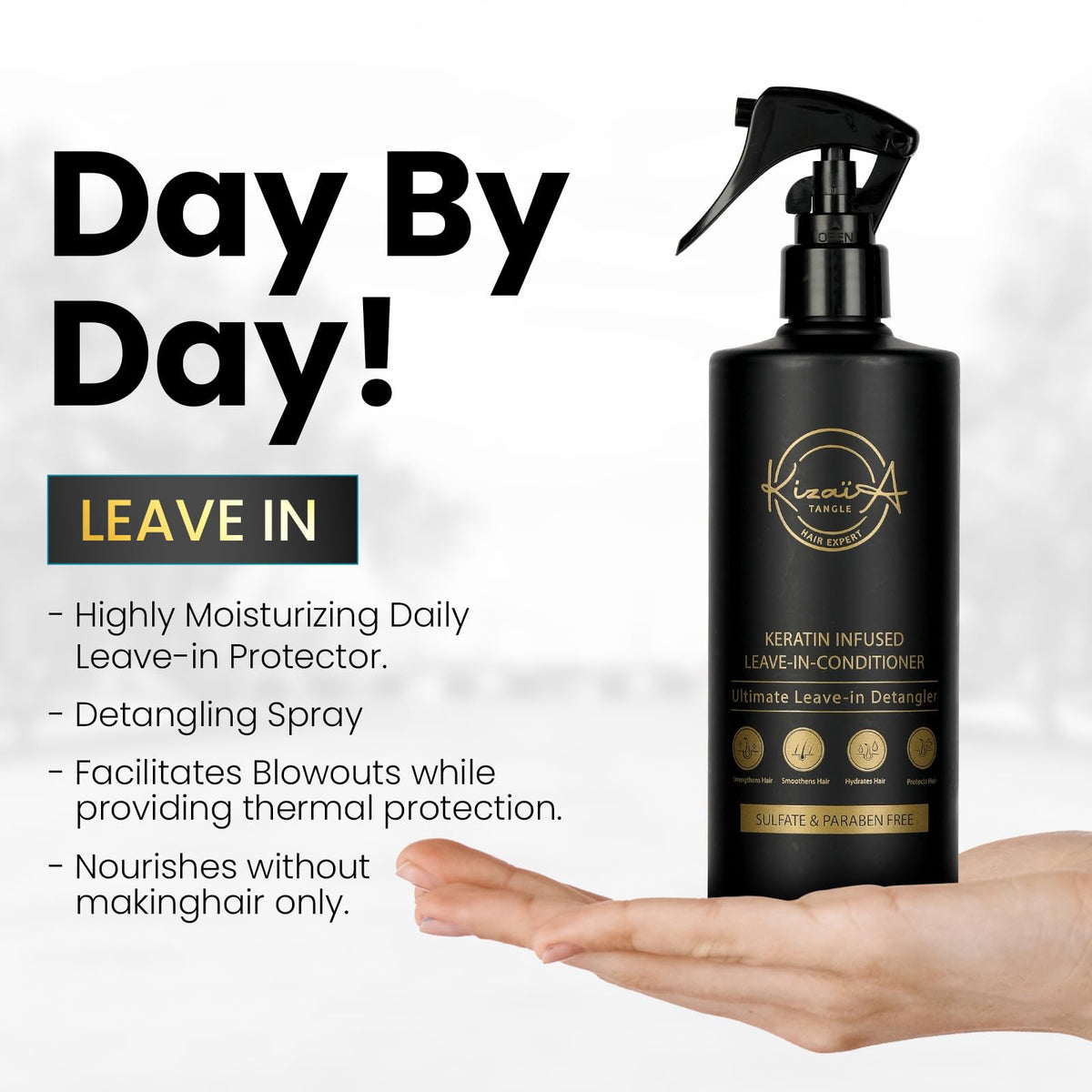 Short Product Description :: Discover the ultimate solution for healthy, beautiful hair with KizaiaCare's all-in-one leave-in conditioner and heat protection spray. This sulfate-free, paraben-free, and cruelty-free formula is infused with premium ingredients like organic Moroccan Argan oil, keratin, and silk protein to repair and protect your hair from the inside out. Whether you're dealing with dry, damaged, or color-treated hair, this product delivers exceptional moisture, frizz control, and thermal protection. Perfect for all hair types, including extensions and wigs, KizaiaCare leaves your hair soft, silky, and easy to manage. Achieve salon-quality results at home with a lightweight, non-greasy formula that prevents split ends, enhances shine, and protects against heat damage. Transform your hair care routine with KizaiaCare—your go-to solution for smooth, healthy, and vibrant hair.