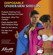 Kleinert’s Disposable Peel & Stick Absorbent Underarm Pads. 12 PADS (6 Pair) Style # MW-4900. Measures 5 W x 5 3/4 L. Discreet, Comfortable, Sweat Free, Odor Blocker, Peel And Stick Dress Shields