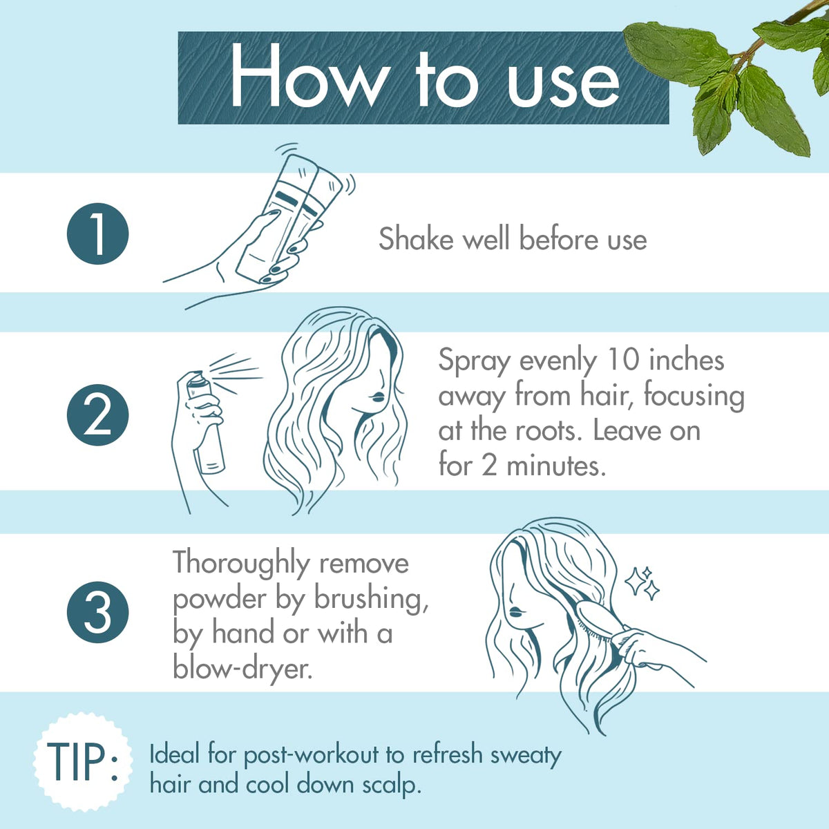 Shake well before use and spray evenly 10 inches away from hair, focusing at the roots. Leave on for 2 minutes and then thoroughly remove powder by brushing, by hand or with a blowdryer.