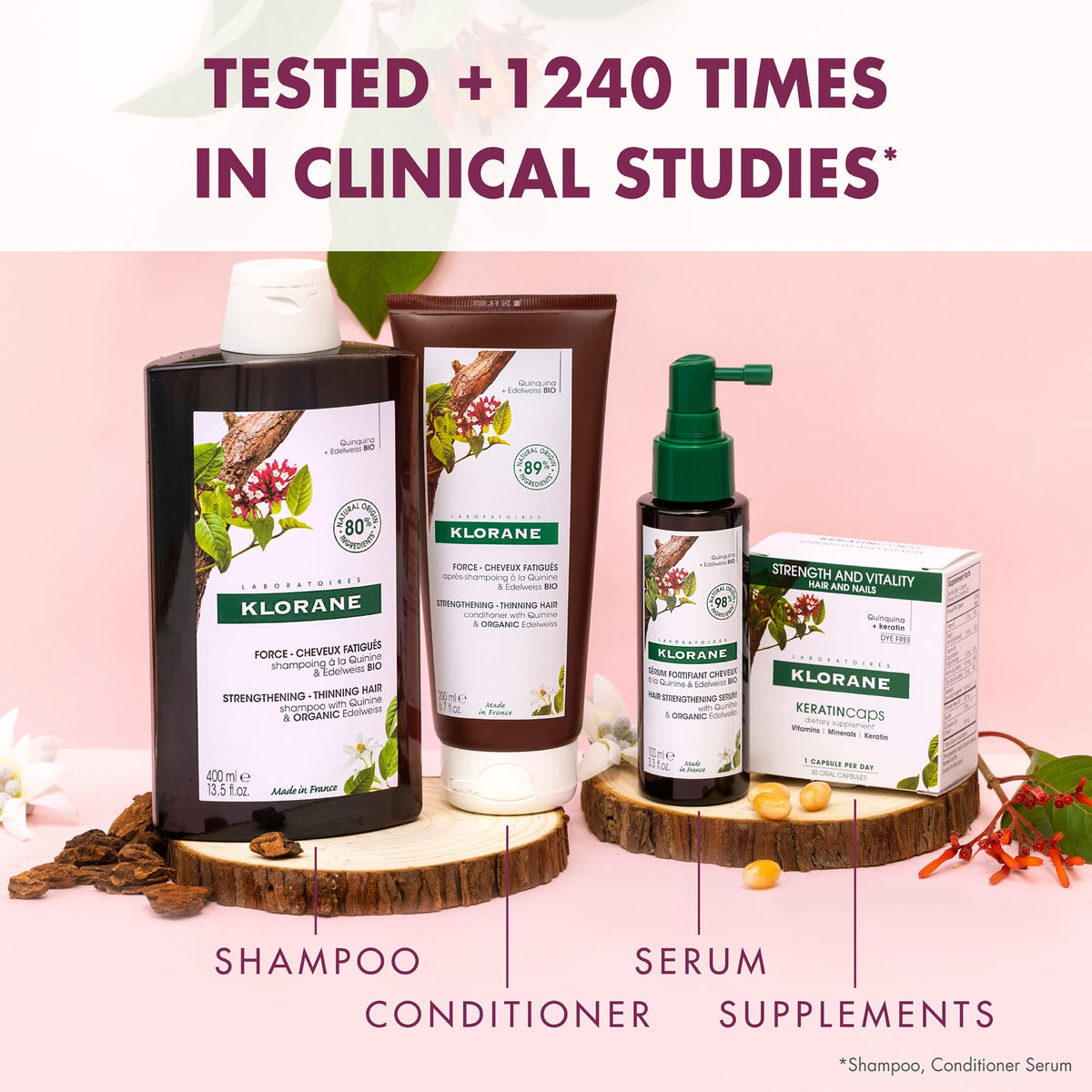Klorane - Strengthening Shampoo - with Quinine & Edelweiss For Thinning Hair - Support Thicker Hair - Silicone, Paraben & Sulfate Free - 13.5 fl. oz.