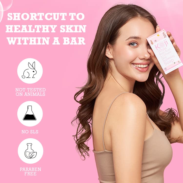 Achieve radiant skin with Koji White Kojic Acid & Collagen Skin Brightening Soap. This moisturizing bar helps reduce wrinkles, brighten complexion, and promote natural glow for a youthful appearance.