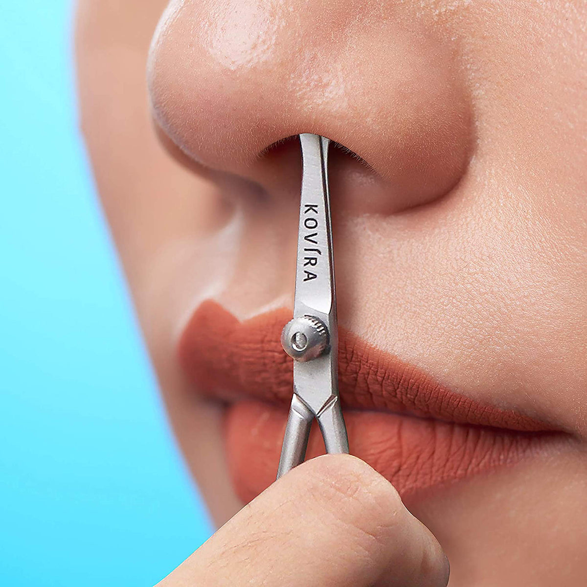 Kovira Precision Nose Scissors are designed with an adjustable tension screw for precise grooming of nasal hair, eyebrows, ear hair, and beards, ensuring a safe and clean trimming experience.