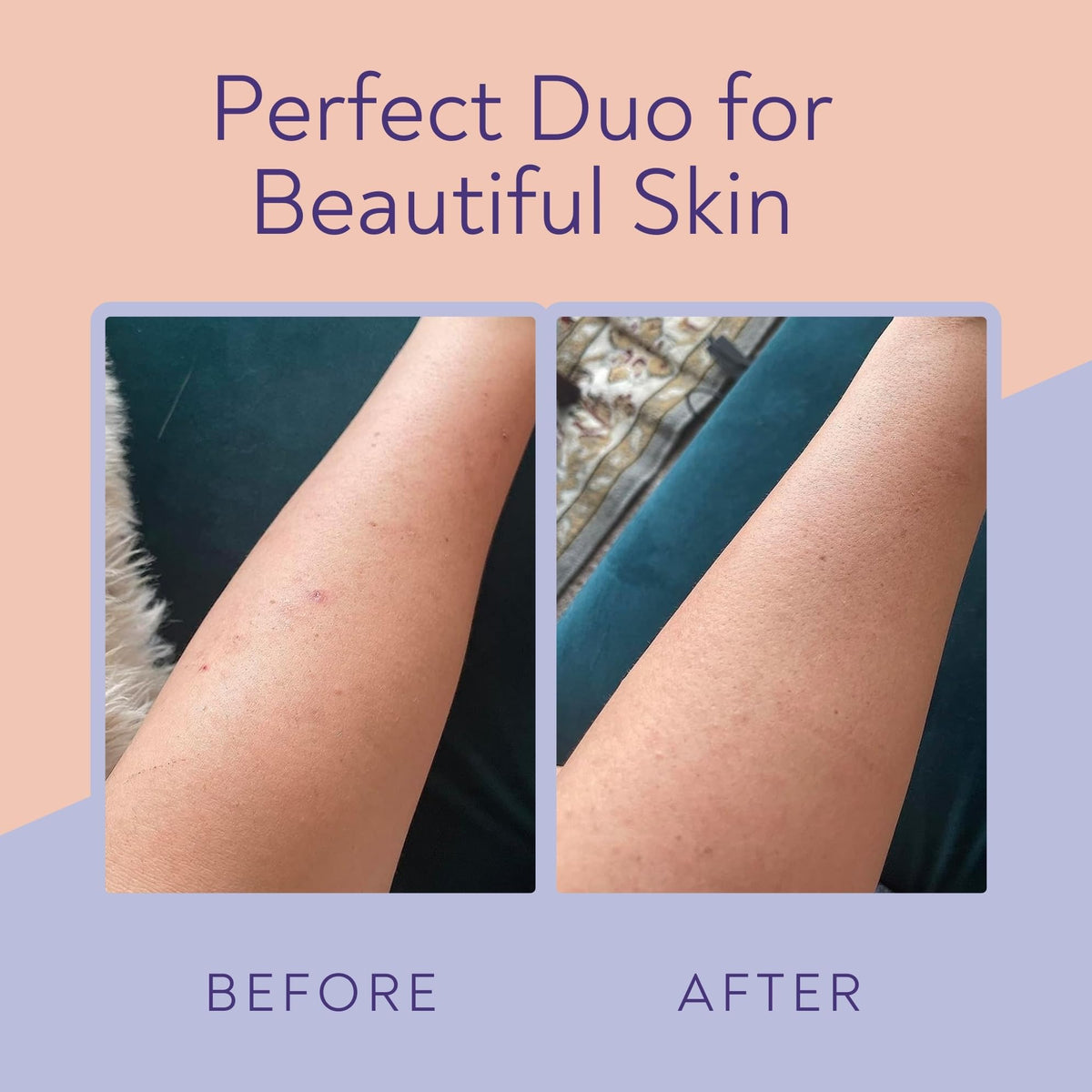 Transform your skin with KP Bump Eraser Body Scrub & Keratosis Pilaris Lotion Bundle Set. This strawberry legs treatment exfoliates and deeply hydrates, revealing smoother and healthier-looking skin.