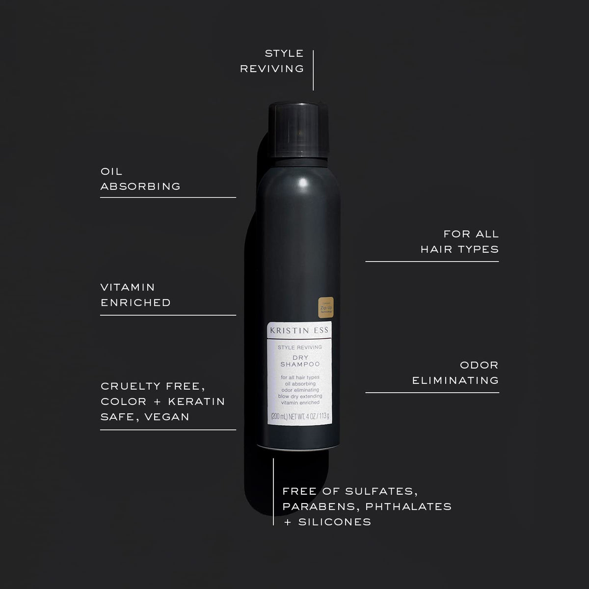 Revive your hairstyle with Kristin Ess Hair Style Reviving Dry Shampoo. This oil-absorbing powder spray with Vitamin C is perfect for all hair types, saving you time and keeping your hair fresh.